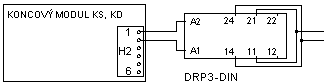 Je-li k jednomu koncovému modulu KS připojeno více desek relé (dvě pro DRP4 a DRP3, dvě nebo tři pro DRP2), spojují se jejich magnetizační cívky (svorky 1, 2 u DRP4, DRP3, DRP2 nebo A1, A2 DRP3-DIN) paralelně. Pozor na správnou polaritu připojení!!!